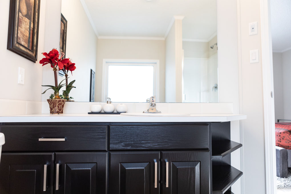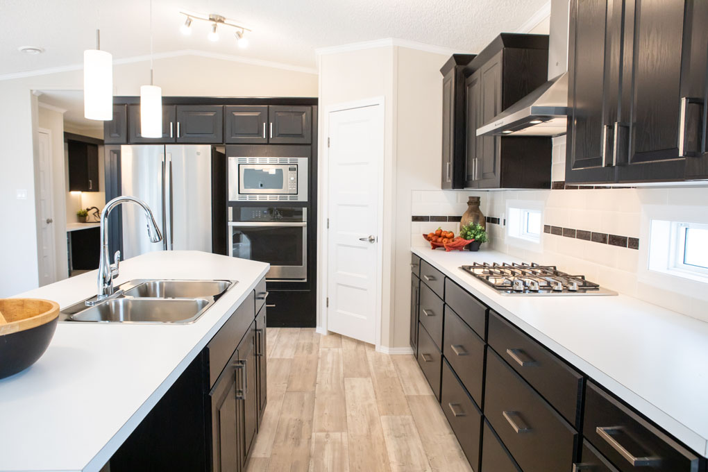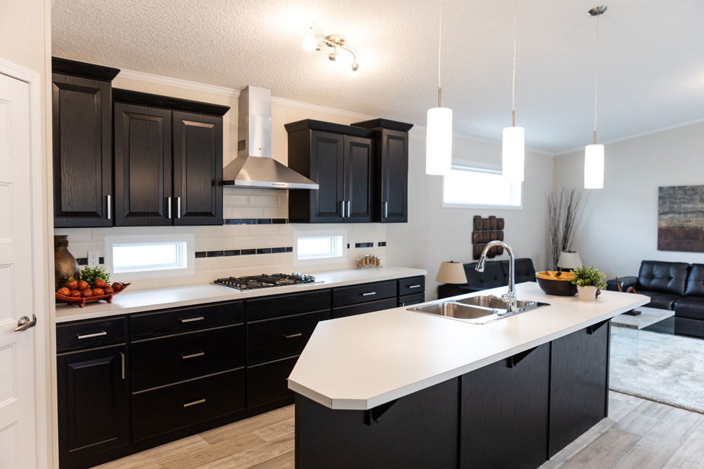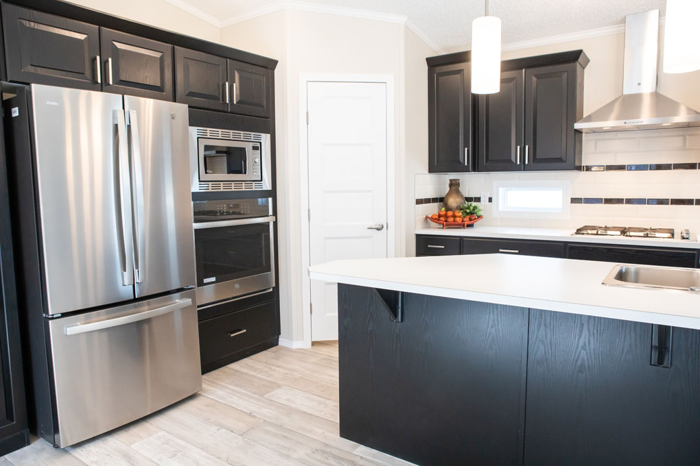 Immediately upon entering this home you’ll be greeted with a show-stopping kitchen. Its large kitchen island is the perfect place to have a coffee in the morning before heading out the door of for the kids to grab a quick snack after school. This particular kitchen island is also equipped with functional corner shelves for storing stackable items. We’ve also customized this kitchen to include a walk-through pantry – a perfect feature for easily hauling groceries in from the utility room door.