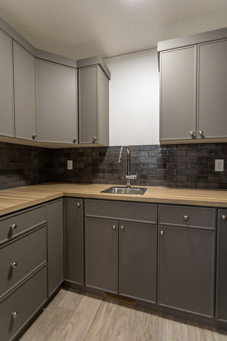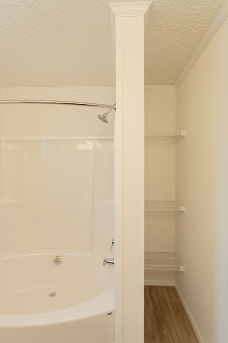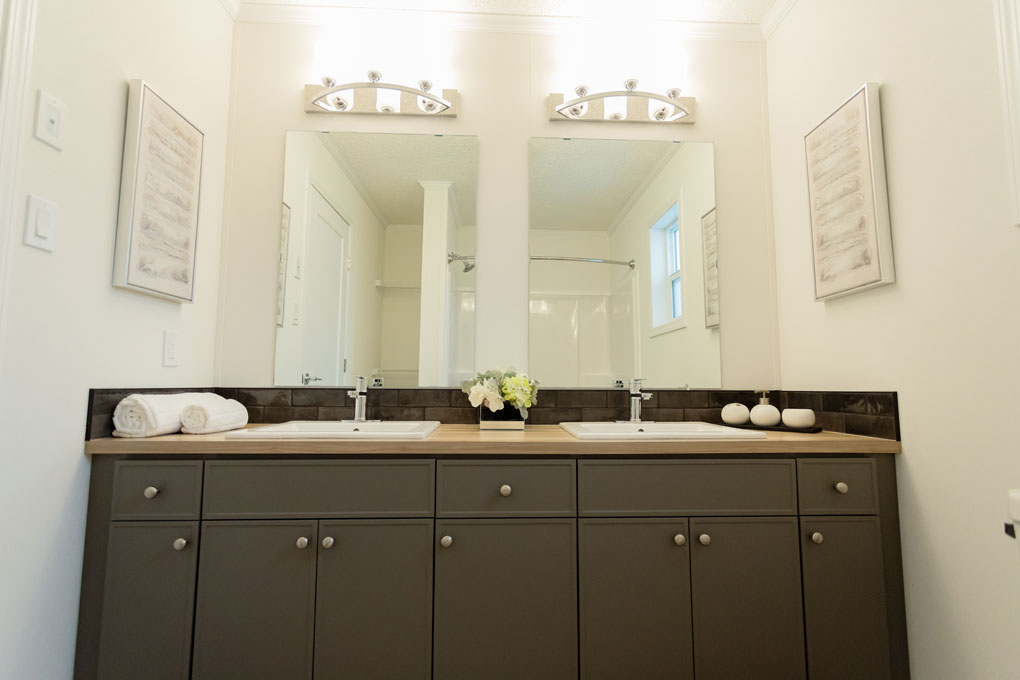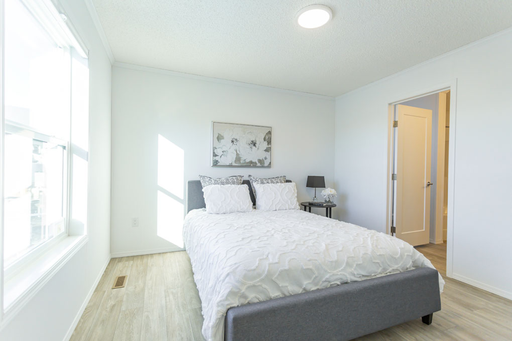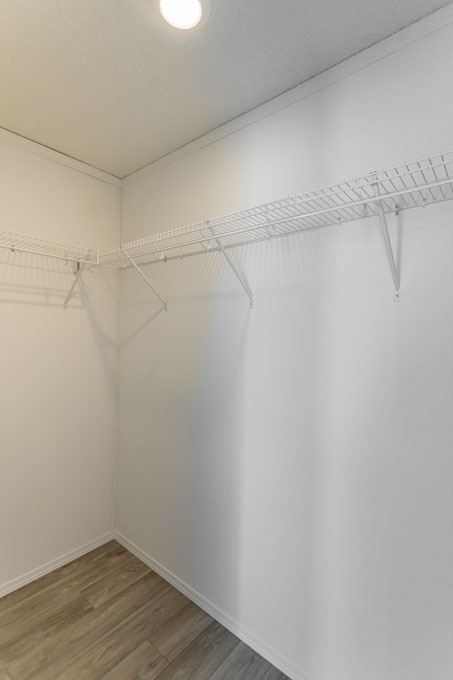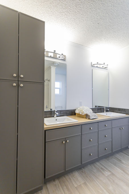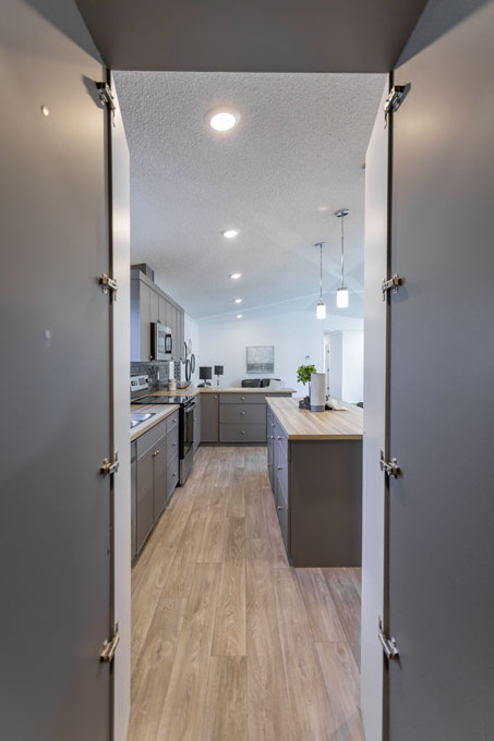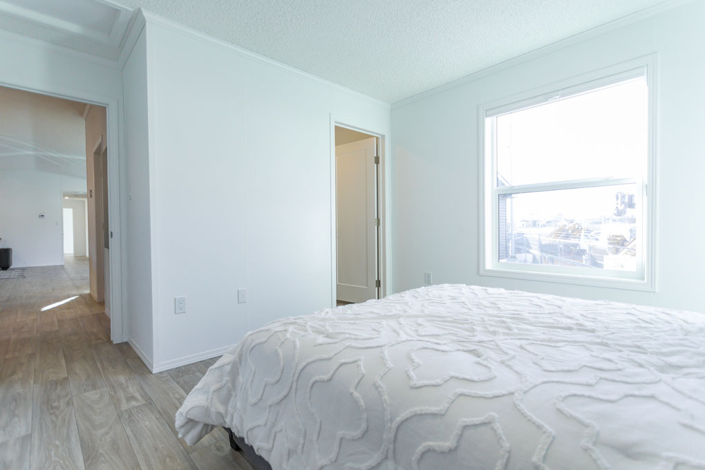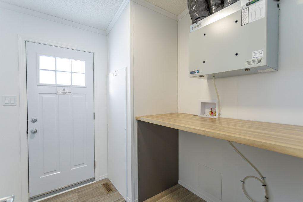 The primary bedroom is on the opposite side of the spare bedrooms for added privacy. The ensuite includes built-in linen storage for added convenience, while the generously sized spare bedrooms provide plenty of room to spread out. We’ve also added a counter over the washer and dryer to make laundry day more convenient. This extra workspace is perfect for folding clothes, organizing essentials, or even adding a decorative touch to your laundry area.