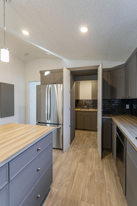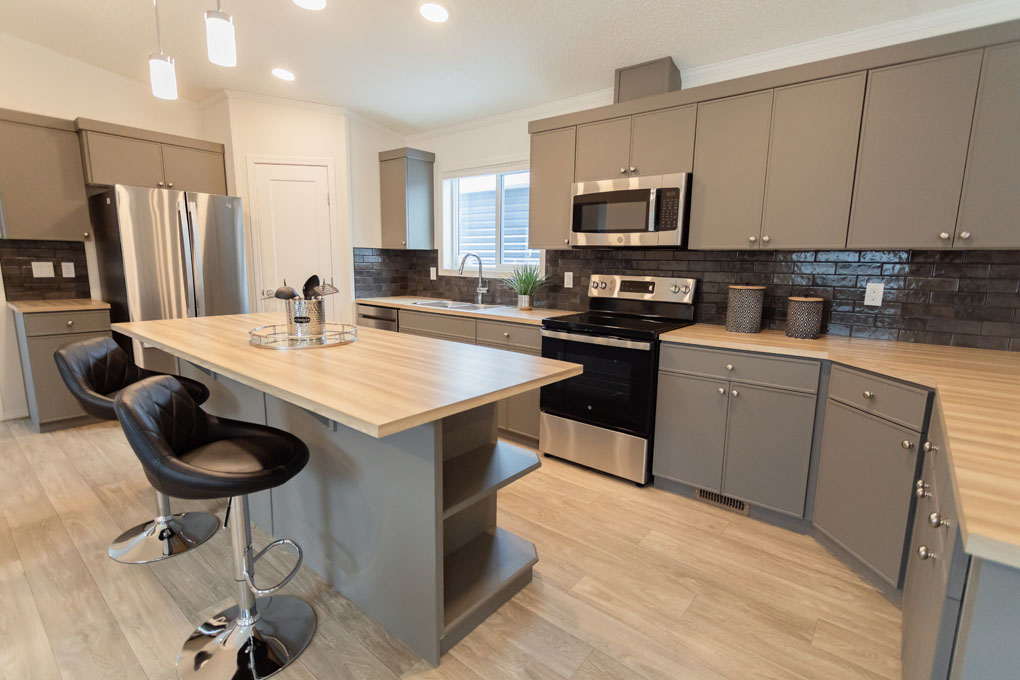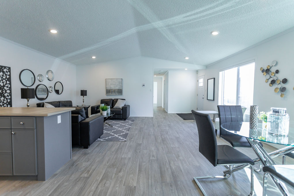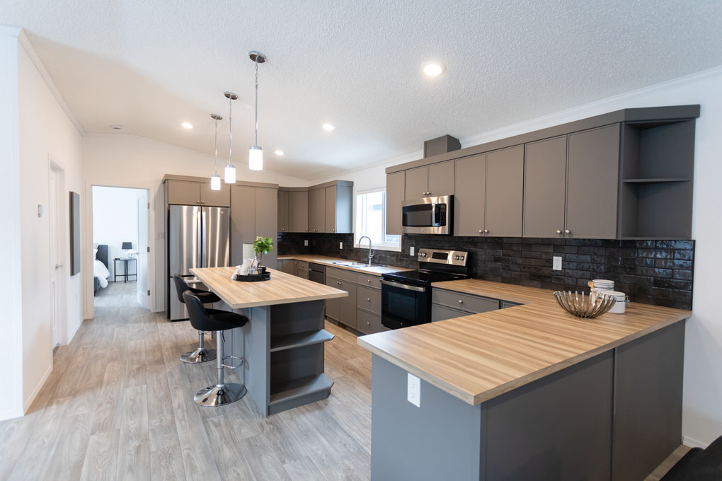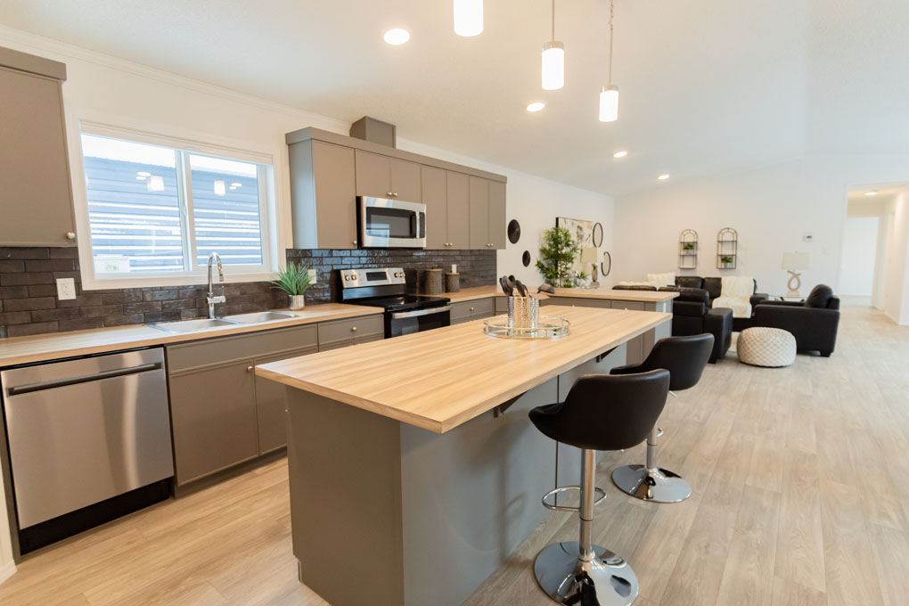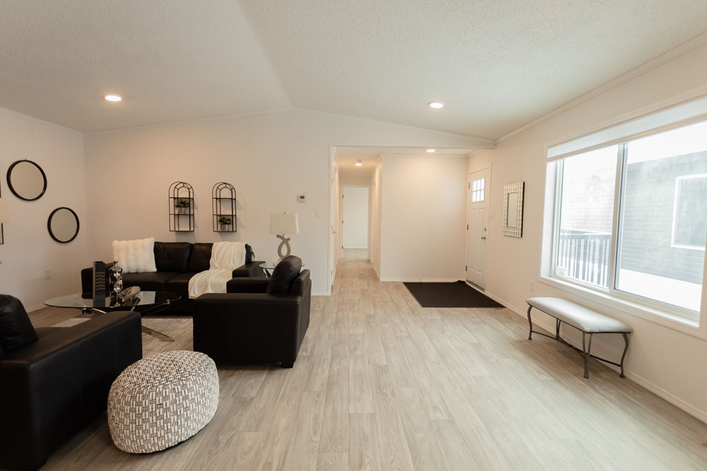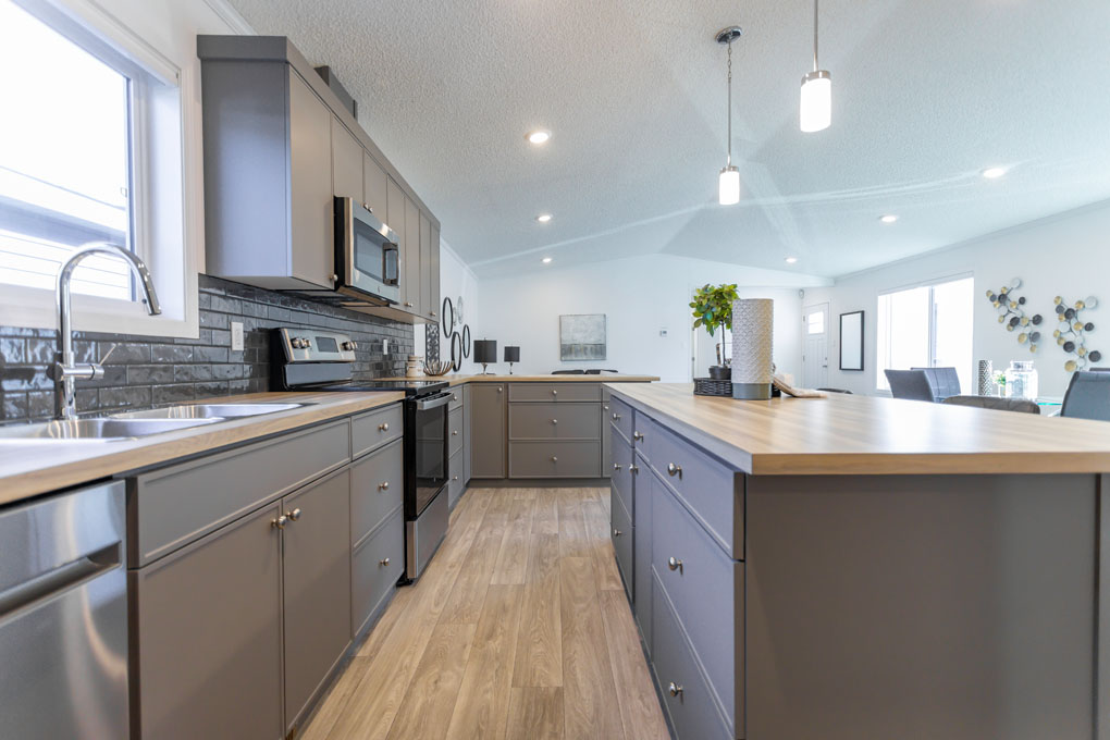 The Sterling is a spacious 1,672 sq. ft. home designed for growing families or those who love extra space. With 4 large bedrooms and 2 bathrooms, this home offers both comfort and functionality. The kitchen is a standout, featuring ample storage, a practical peninsula, and a bold, modern color palette that makes a statement. Large windows throughout fill the home with natural light, creating a warm and inviting atmosphere.