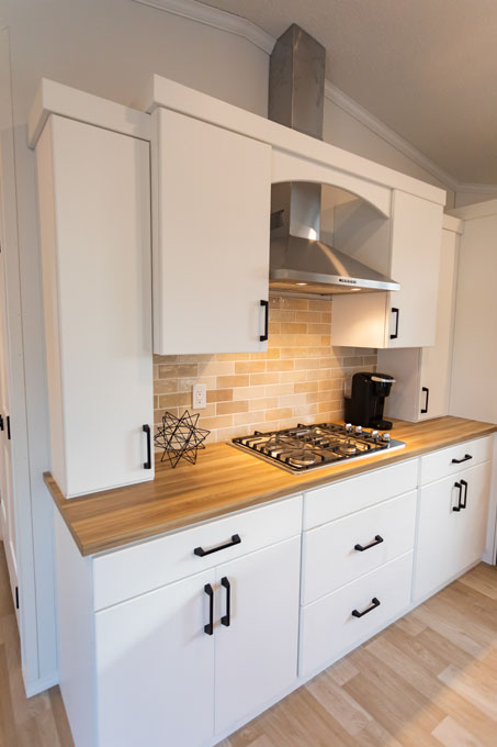 Step inside and you’ll find a thoughtfully designed layout with three bedrooms, two bathrooms, and a dream kitchen at the heart of it all. A gas range and stunning hood fan add both functionality and style, while the natural colors, black hardware, and lighting package create a cohesive, sophisticated look. With abundant counter space and cabinetry, this kitchen balances beauty and practicality—perfect for everything from weeknight dinners to special occasions.