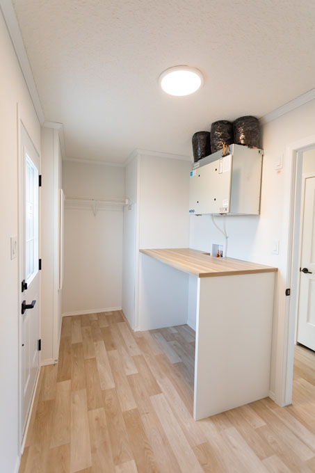 Every detail in the Tuscany is designed for comfort and convenience. A built-in bench at the entryway keeps clutter at bay, while a built-in desk just off the kitchen offers a dedicated space for organization and productivity. The utility room is equally thoughtful, featuring countertops above the washer and dryer for effortless laundry days. Oversized windows throughout flood the home with natural light, creating a bright and welcoming atmosphere in every room.