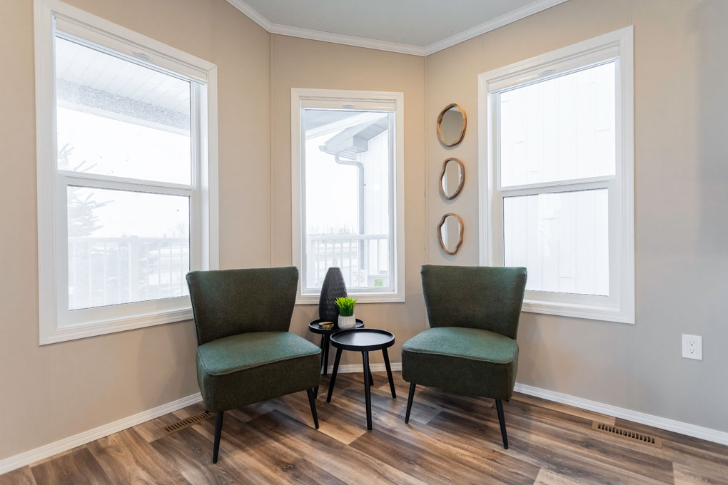 Step into the cozy charm of our Windermere Show Home, a perfect cottage getaway with 2 bedrooms and 2 bathrooms. You’ll love the bright, open layout and the wall of windows at the front, filling every corner with sunshine. Imagine sipping your morning coffee on the covered front porch, watching the world wake up. Whether you’re hosting friends or enjoying a quiet night in, this home feels welcoming and spacious.